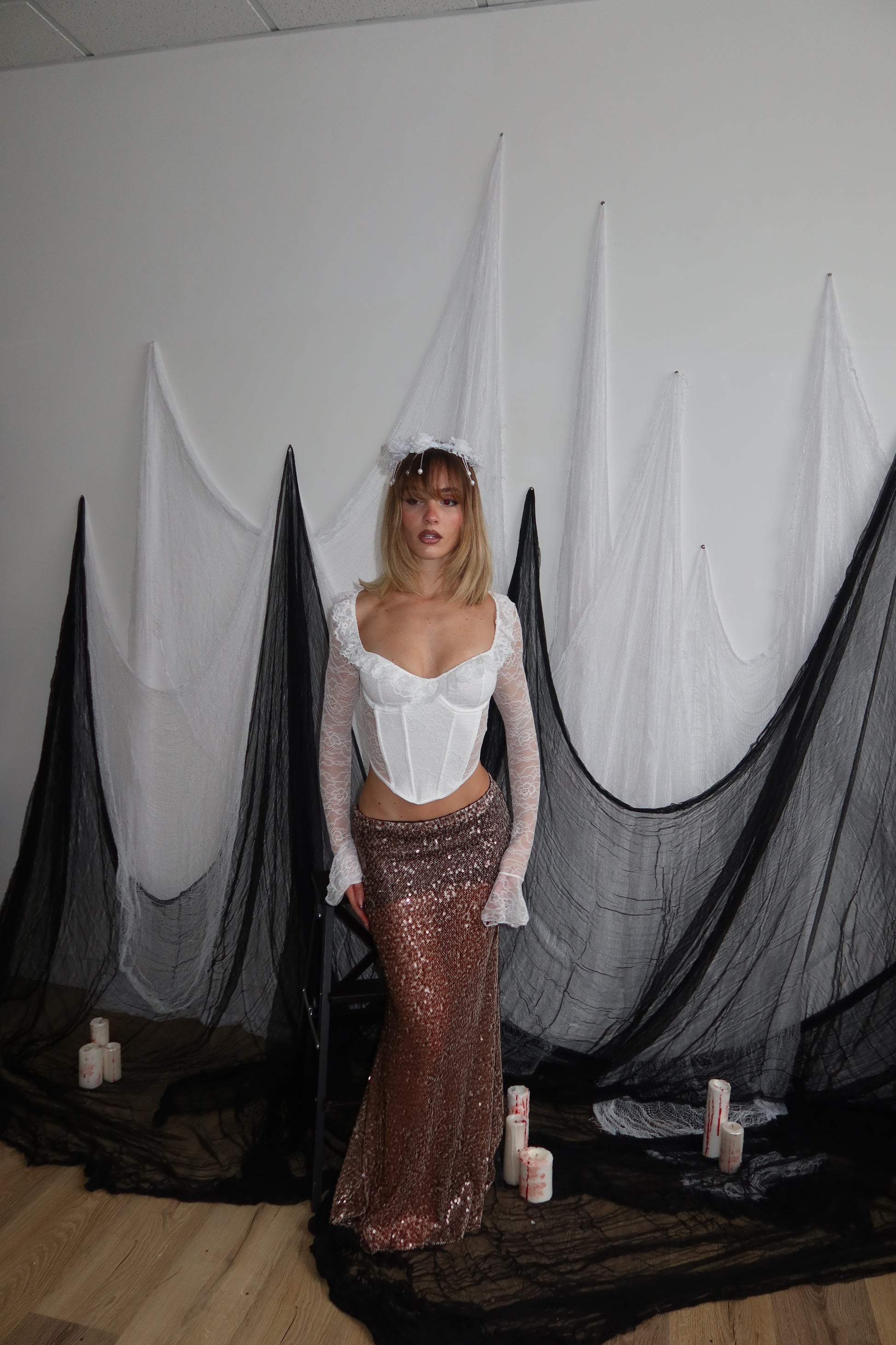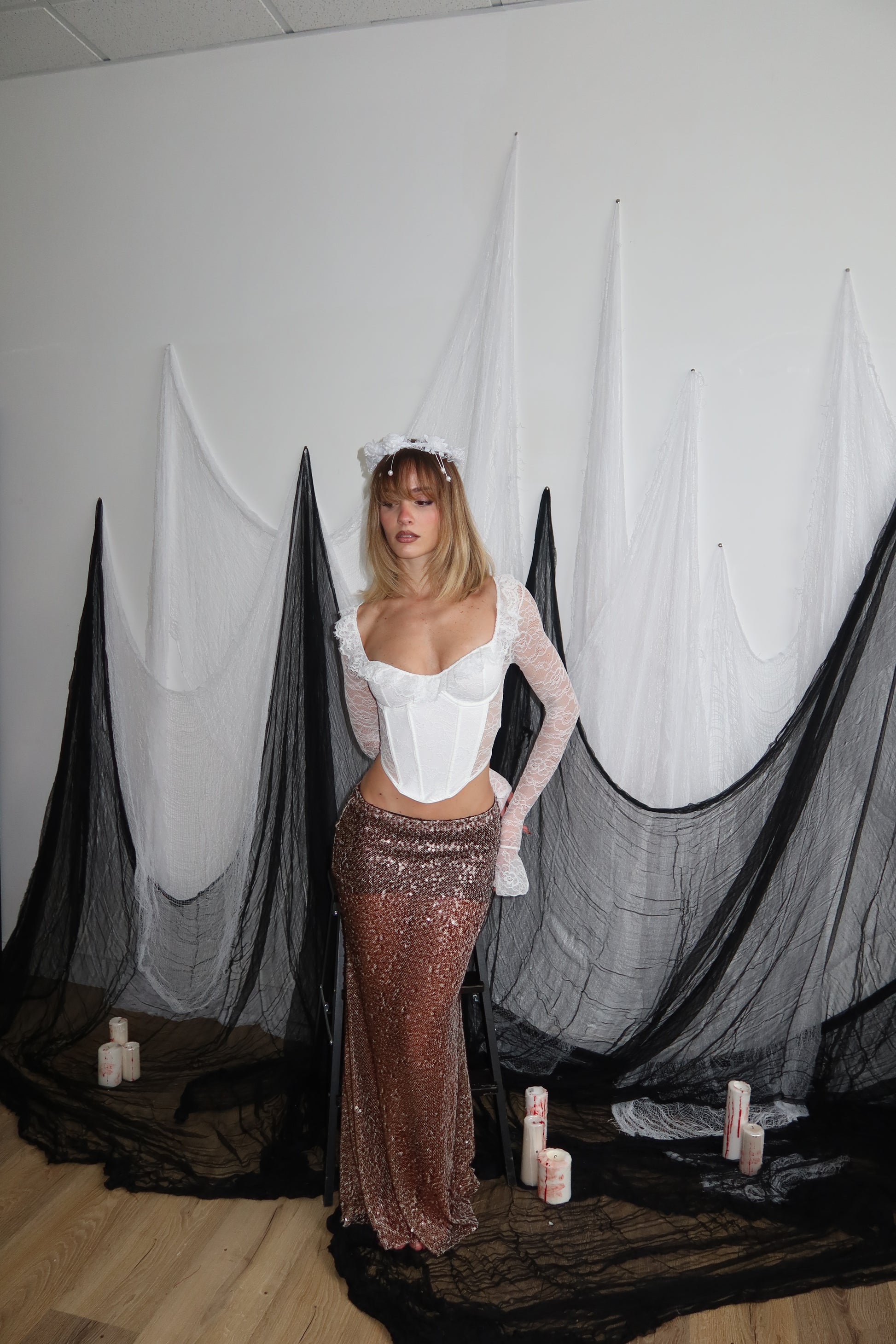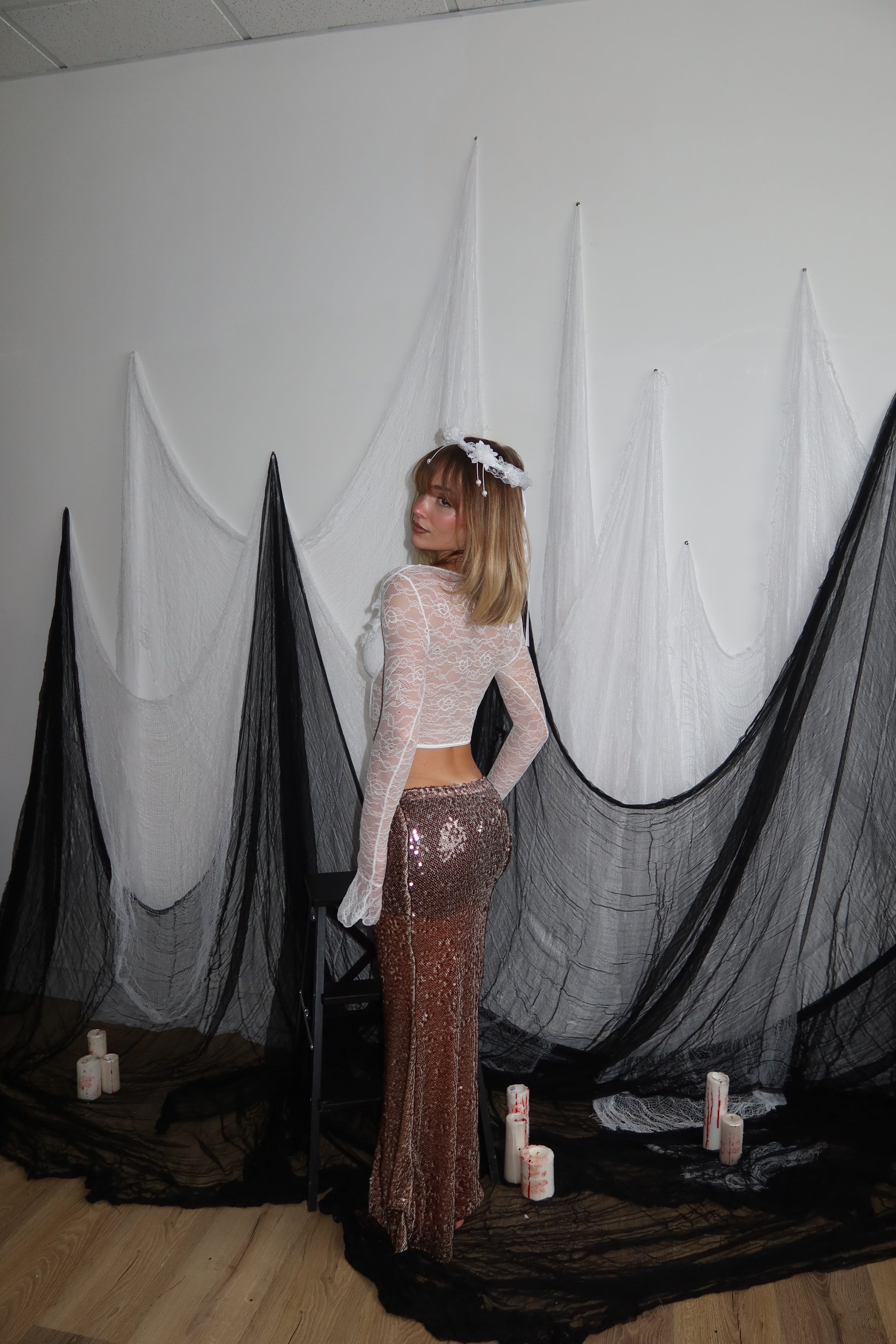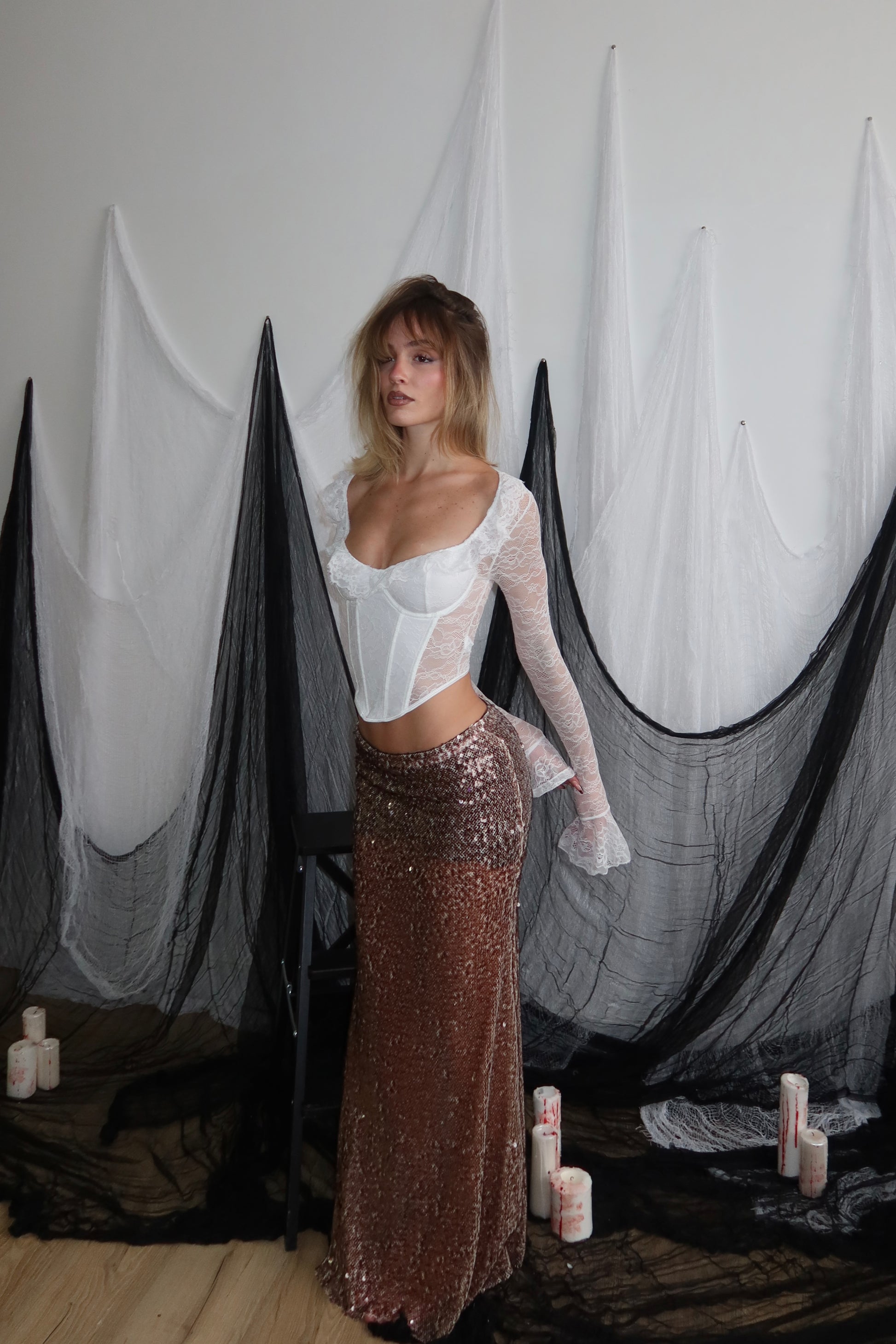 La modella è alta 1,60 taglia unica 36/44 95% poliestere 5% elastane.