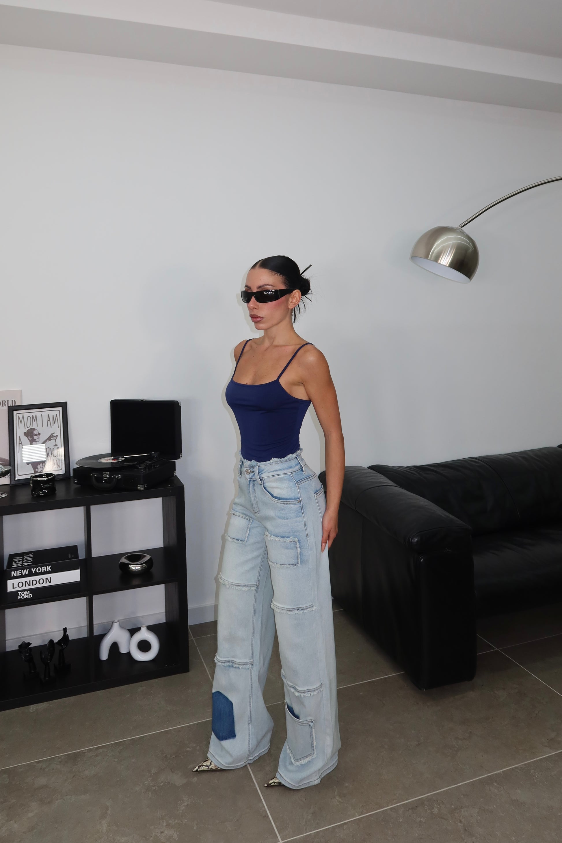 La modella è alta 1,60 indossa taglia XS vita alta poco elastico