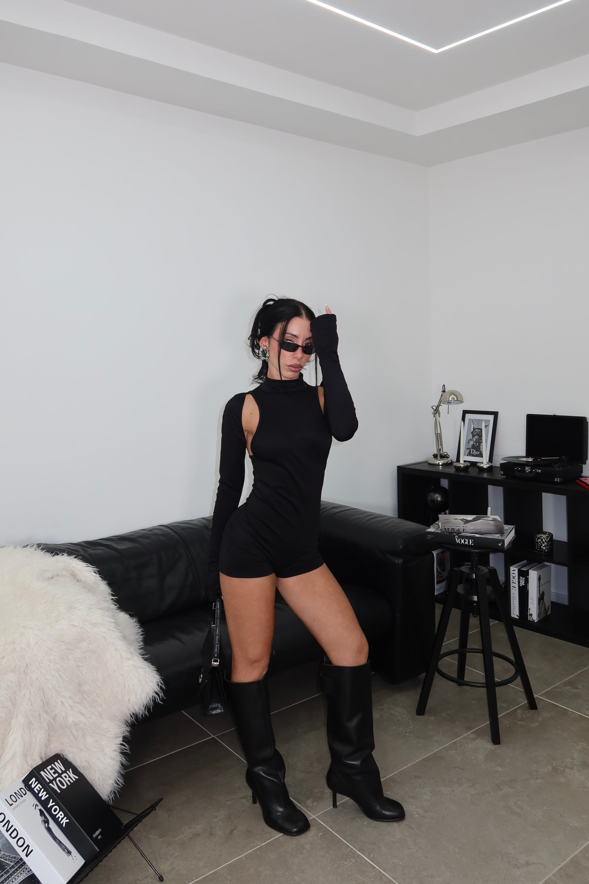 La modella è alta 1,60 taglia unica 36/44 96% poliestere 4% elastane.